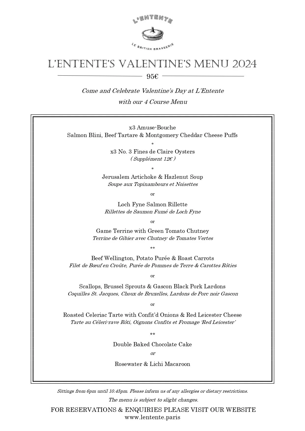 Valentine's Menu